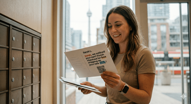 - The Mail Piece: An oversized postcard arrives 48 hours later showing the exact jacket, with a message like: "We saved your jacket! Finish checking out this week and get free shipping across Canada."